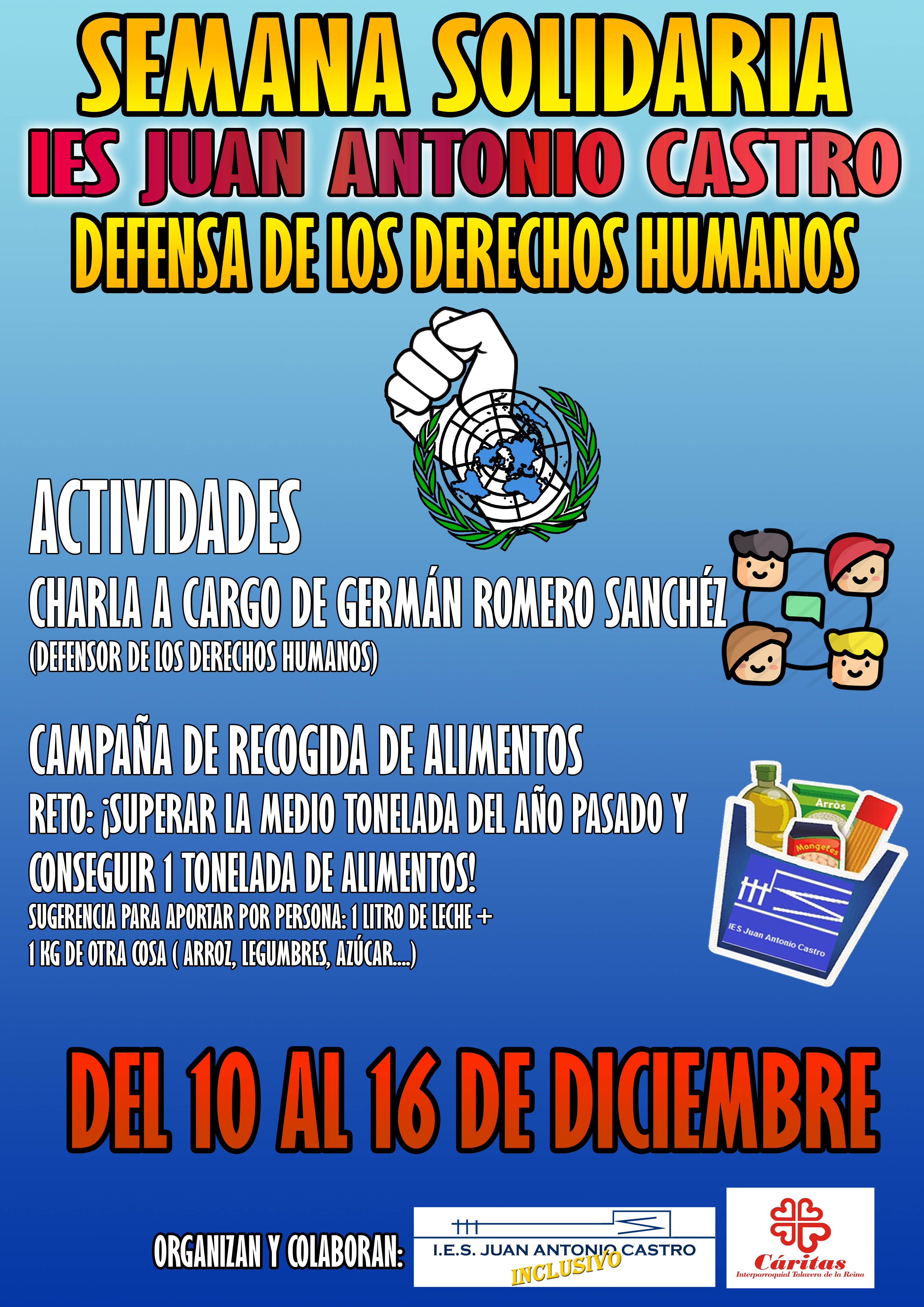Mañana, 10 de diciembre, celebramos el DÍA INTERNACIONAL DE LOS DERECHOS HUMANOS y la preparación de la SEMANA SOLIDARIA.