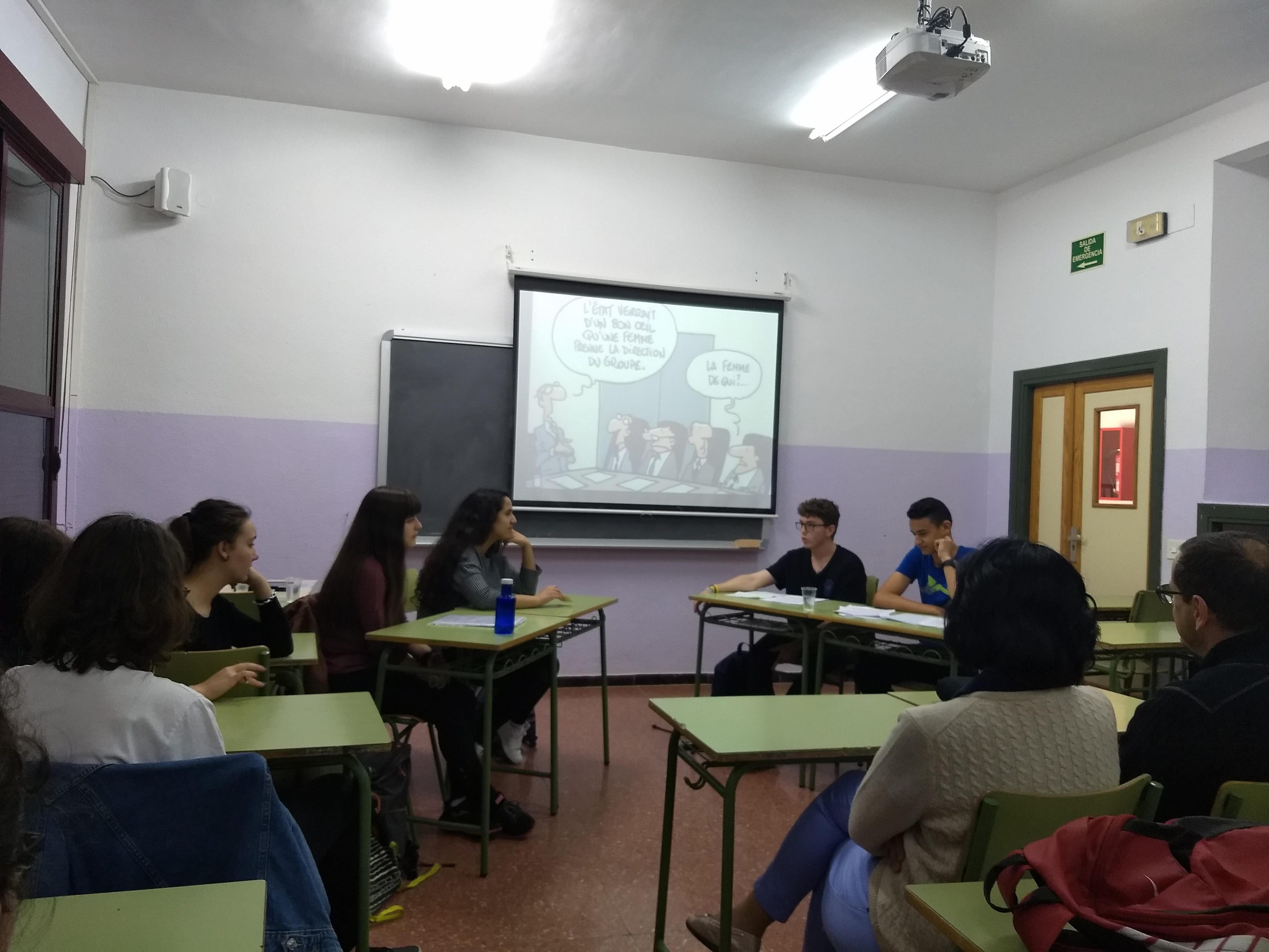 El debate ha tenido lugar en el instituto, en clase de filosofía de bachibac, el martes día 5, y a él han asistido los alumnos de nuestro centro que a esa hora tenían clase de francés, acompañados de sus respectivos profesores.